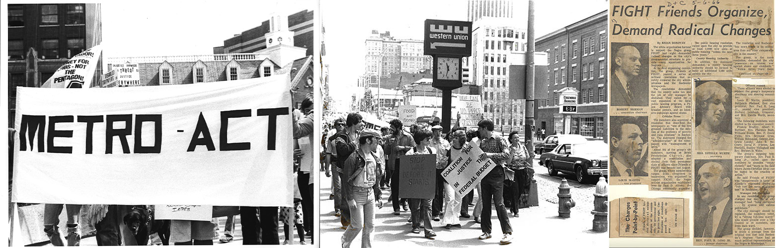 Since its inception as "Friends of FIGHT" in 1965, Metro Justice has been guided by the radical idea that ordinary people can have an impact on the central issues facing Rochester. Over the years, our members have fought for housing justice, racial justice, demilitarization, media democracy, energy democracy, universal healthcare, women's and LGBTQ rights, and much more.